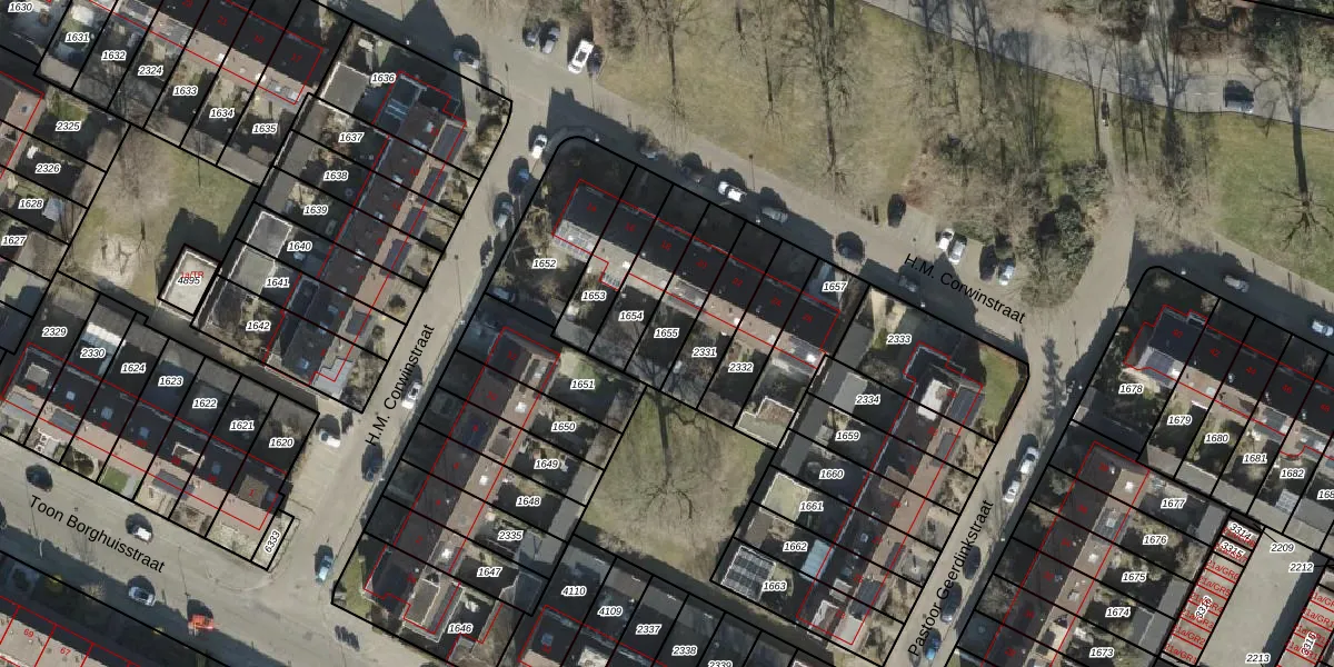 Gebruik de zoekbalk of klik op een perceel om informatie over het perceel te bekijken.