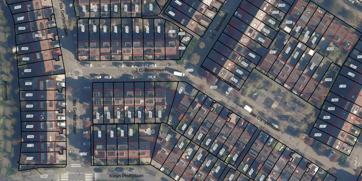 Gebruik de zoekbalk of klik op een perceel om informatie over het perceel te bekijken.