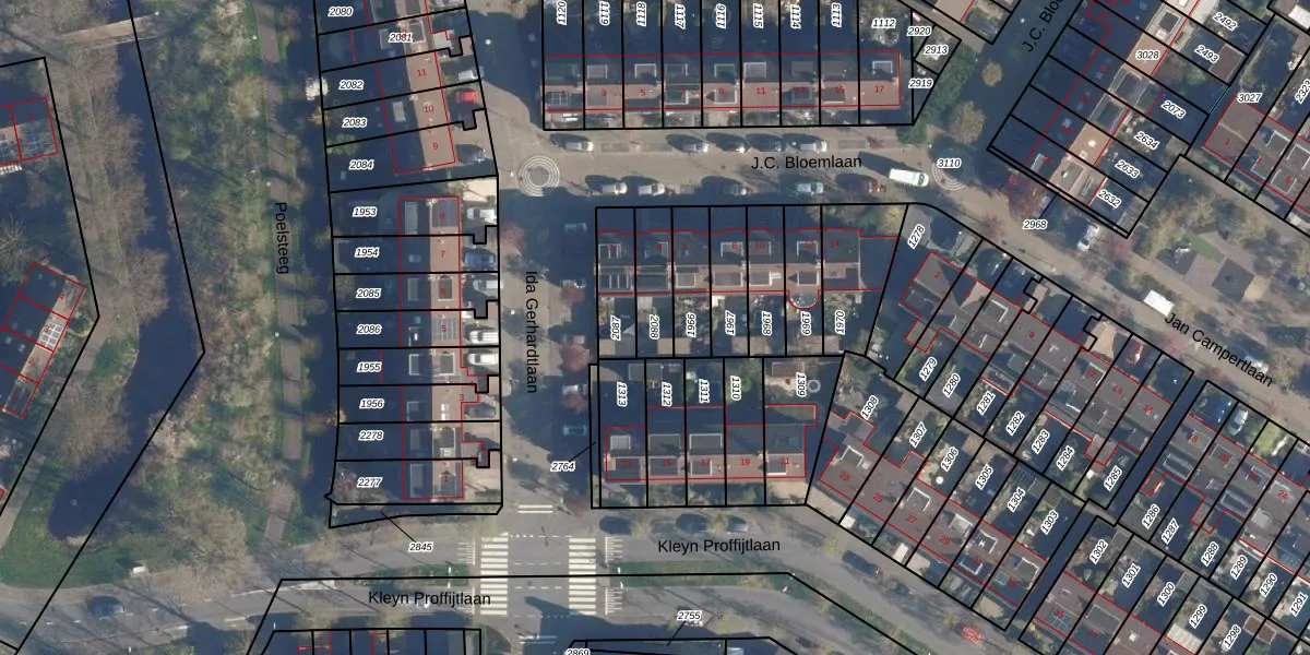 Gebruik de zoekbalk of klik op een perceel om informatie over het perceel te bekijken.