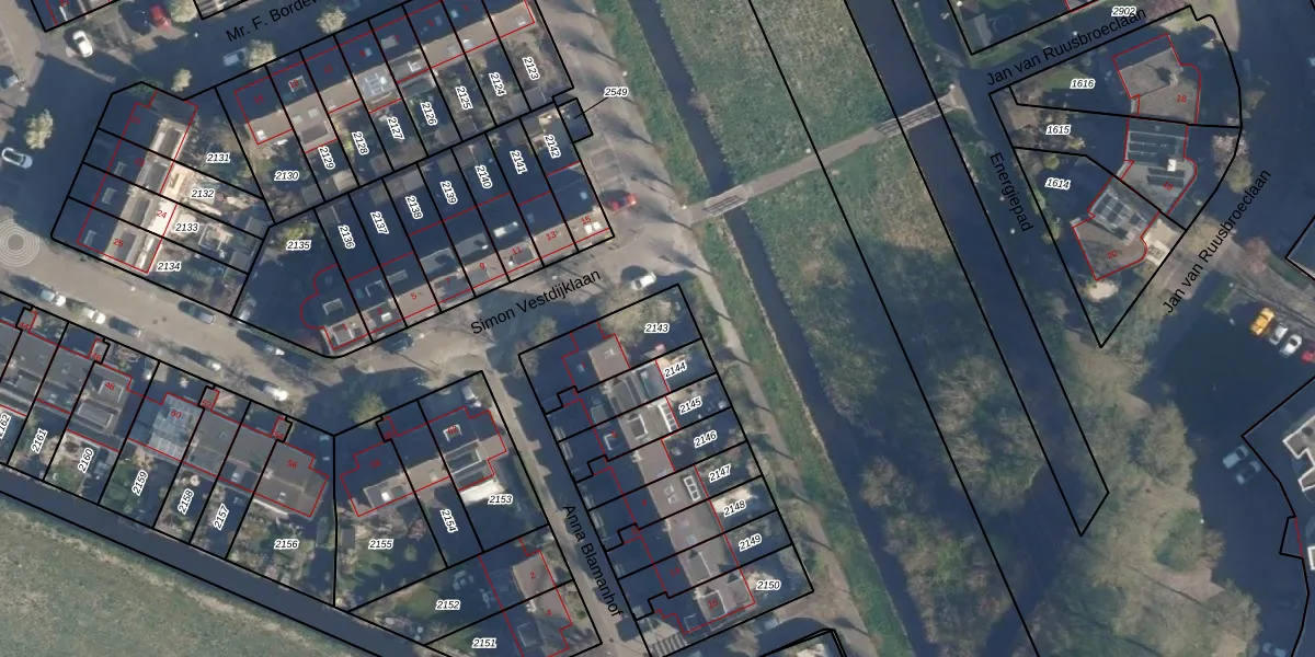 Gebruik de zoekbalk of klik op een perceel om informatie over het perceel te bekijken.