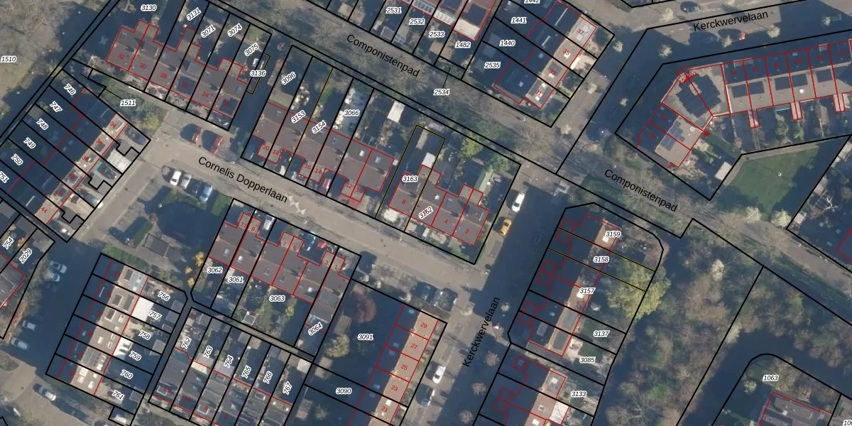 Gebruik de zoekbalk of klik op een perceel om informatie over het perceel te bekijken.