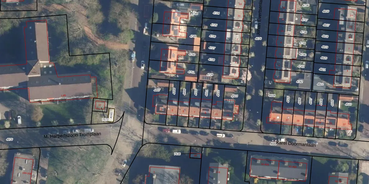 Gebruik de zoekbalk of klik op een perceel om informatie over het perceel te bekijken.
