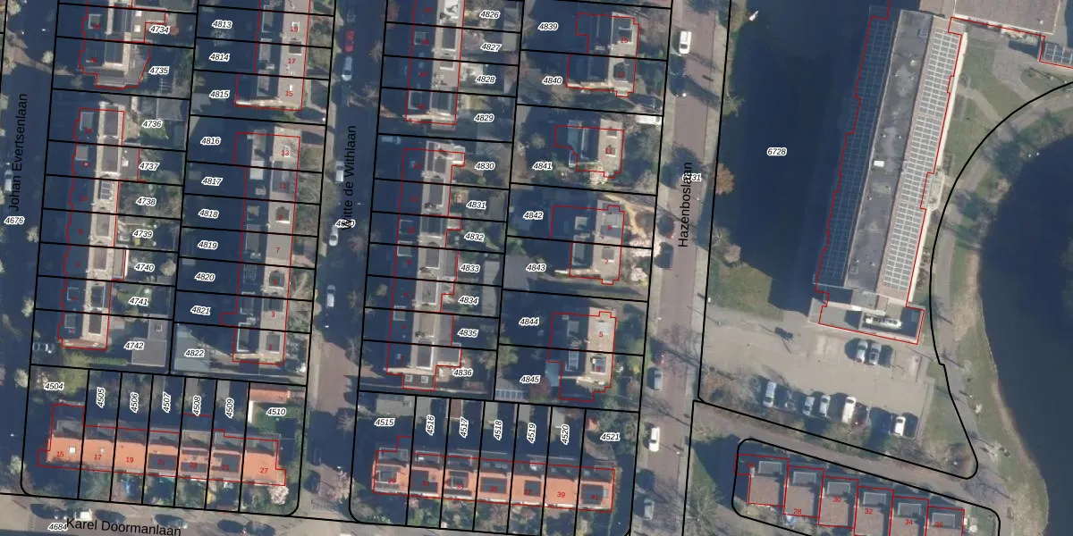 Gebruik de zoekbalk of klik op een perceel om informatie over het perceel te bekijken.