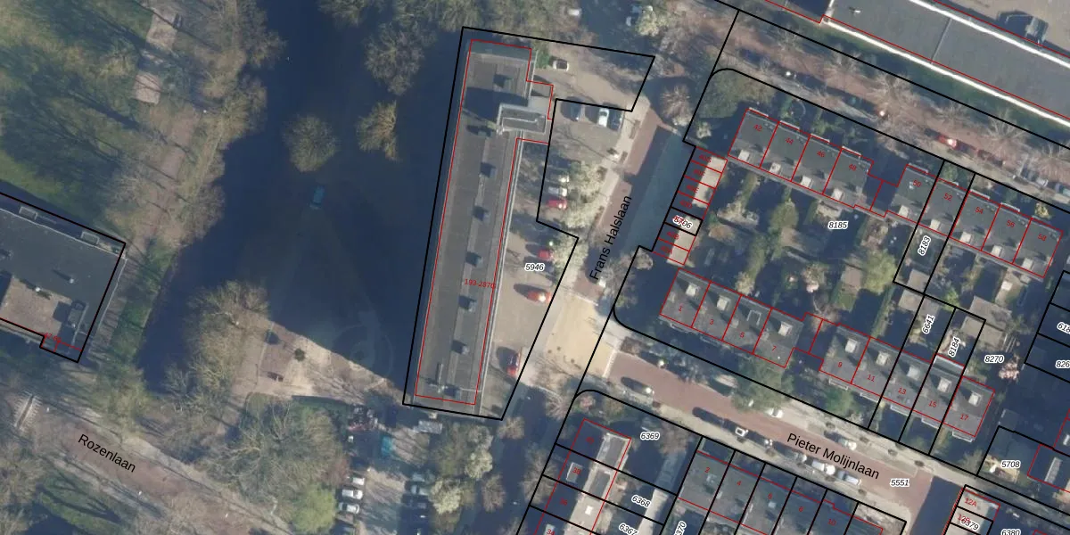 Gebruik de zoekbalk of klik op een perceel om informatie over het perceel te bekijken.