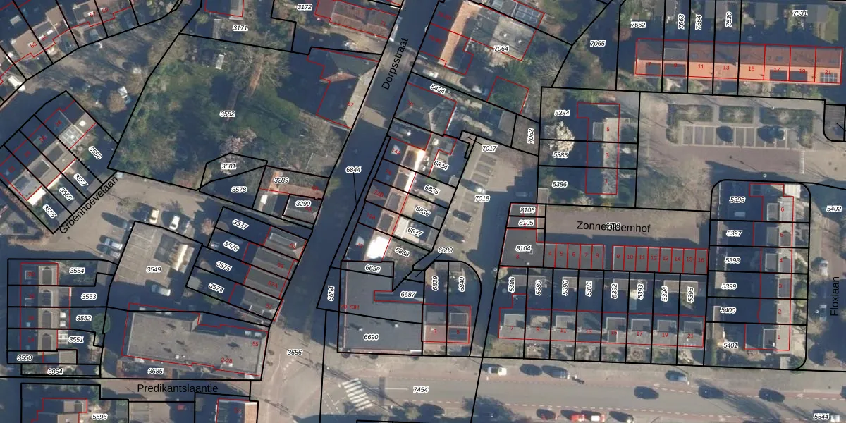 Gebruik de zoekbalk of klik op een perceel om informatie over het perceel te bekijken.