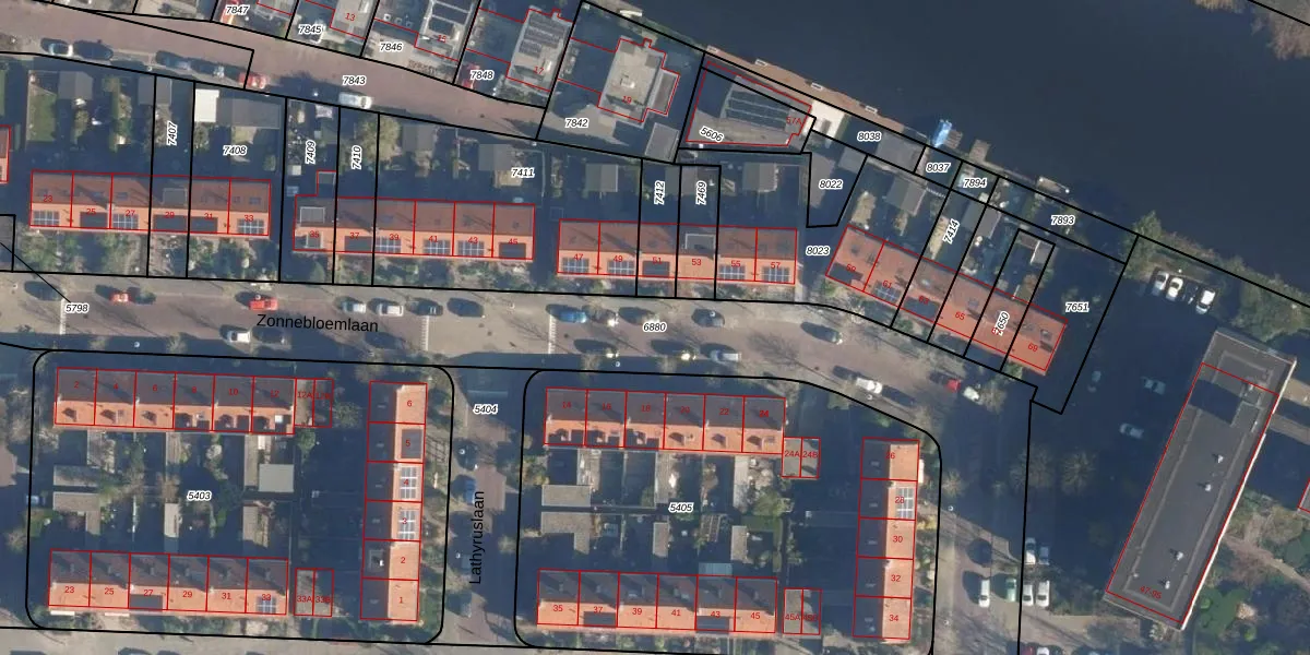 Gebruik de zoekbalk of klik op een perceel om informatie over het perceel te bekijken.