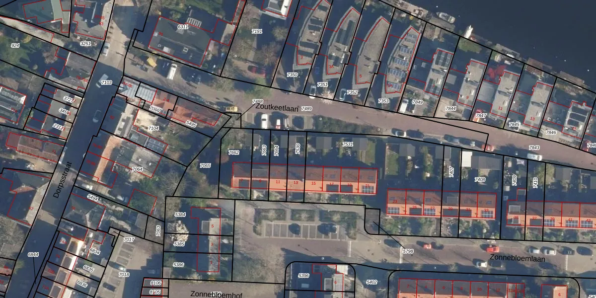 Gebruik de zoekbalk of klik op een perceel om informatie over het perceel te bekijken.
