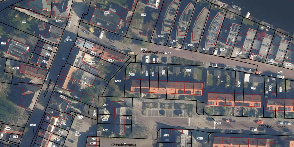 Gebruik de zoekbalk of klik op een perceel om informatie over het perceel te bekijken.