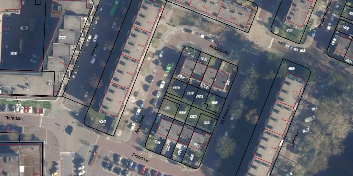Gebruik de zoekbalk of klik op een perceel om informatie over het perceel te bekijken.