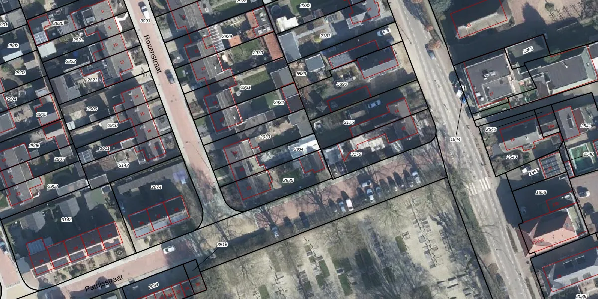 Gebruik de zoekbalk of klik op een perceel om informatie over het perceel te bekijken.