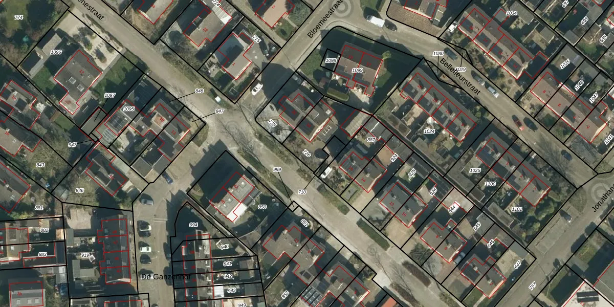 Gebruik de zoekbalk of klik op een perceel om informatie over het perceel te bekijken.