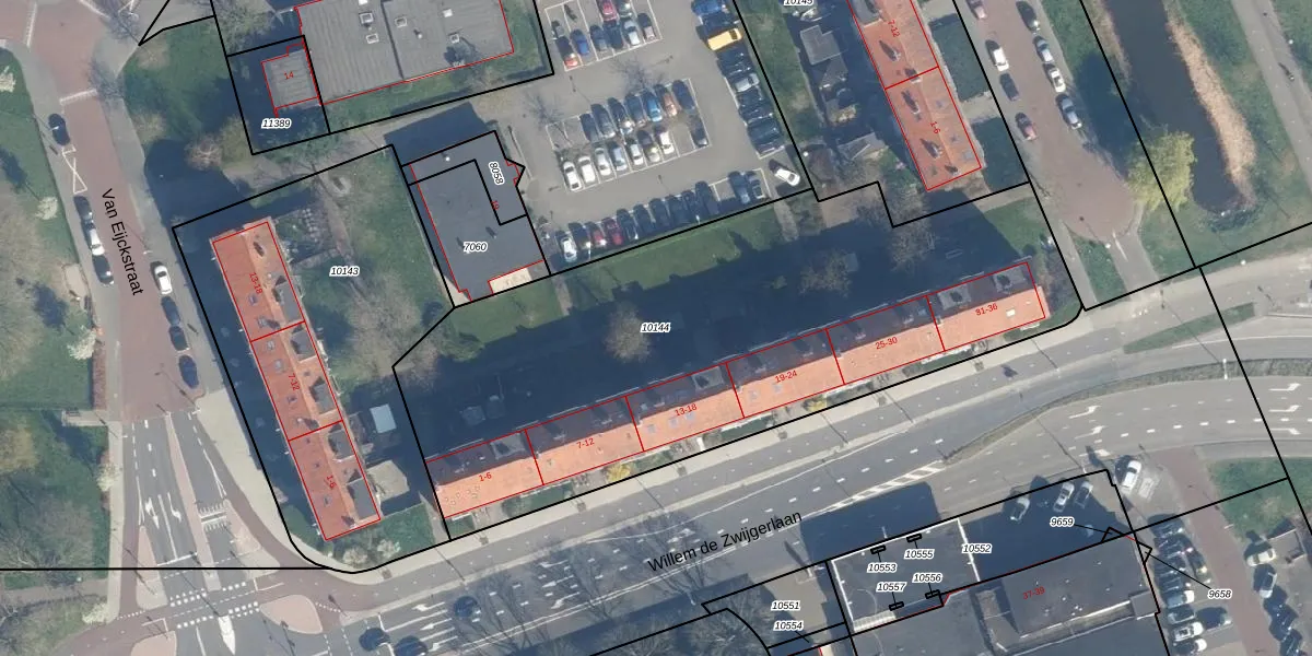 Gebruik de zoekbalk of klik op een perceel om informatie over het perceel te bekijken.