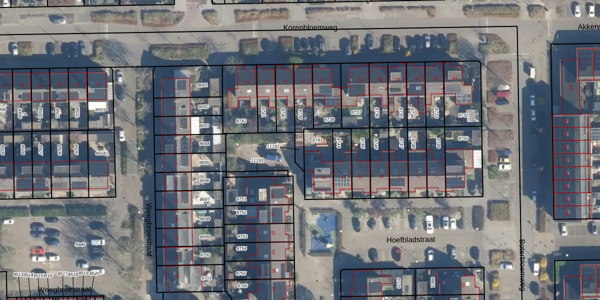 Gebruik de zoekbalk of klik op een perceel om informatie over het perceel te bekijken.