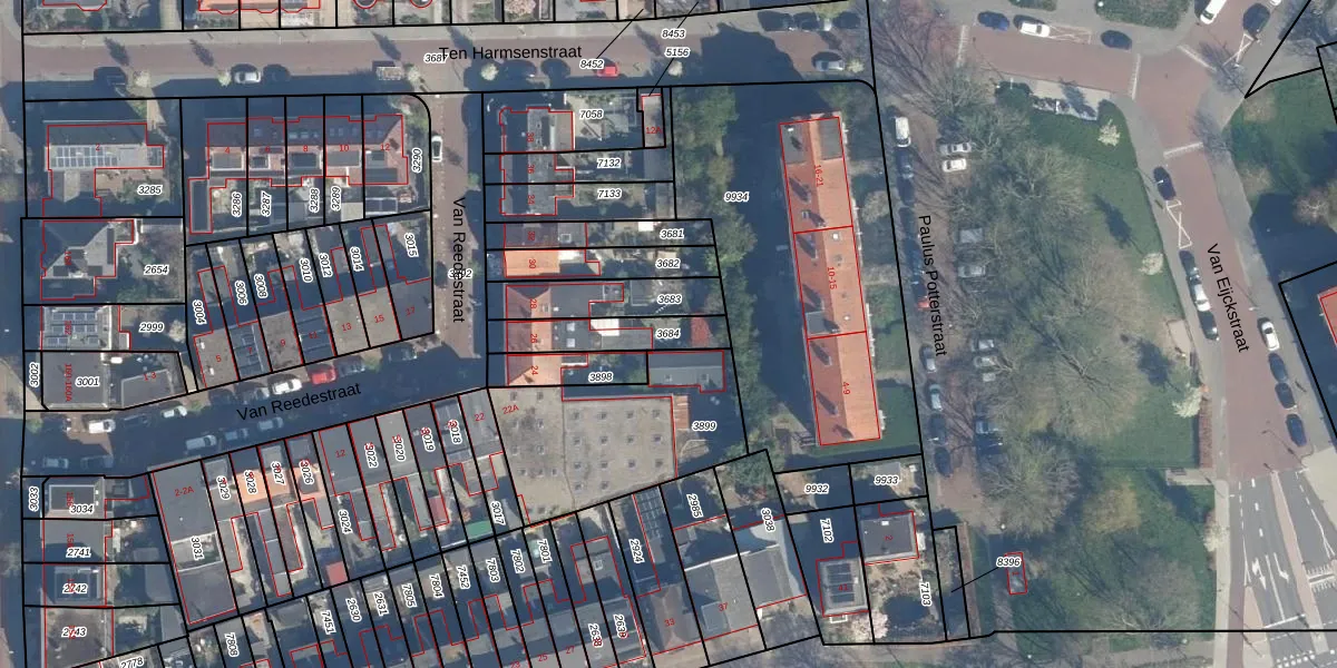 Gebruik de zoekbalk of klik op een perceel om informatie over het perceel te bekijken.