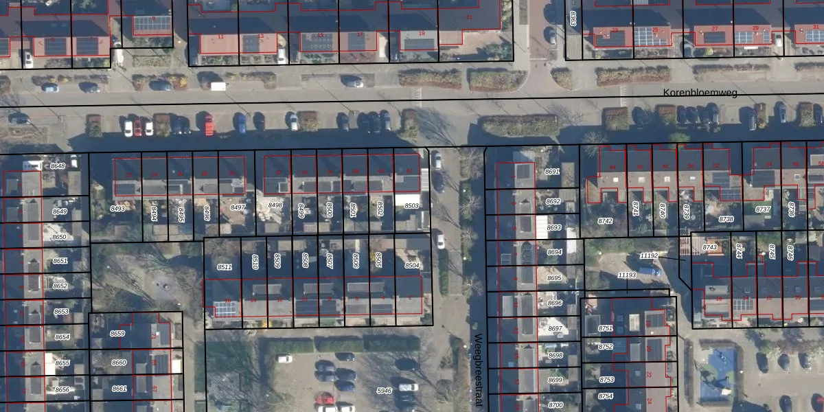 Gebruik de zoekbalk of klik op een perceel om informatie over het perceel te bekijken.
