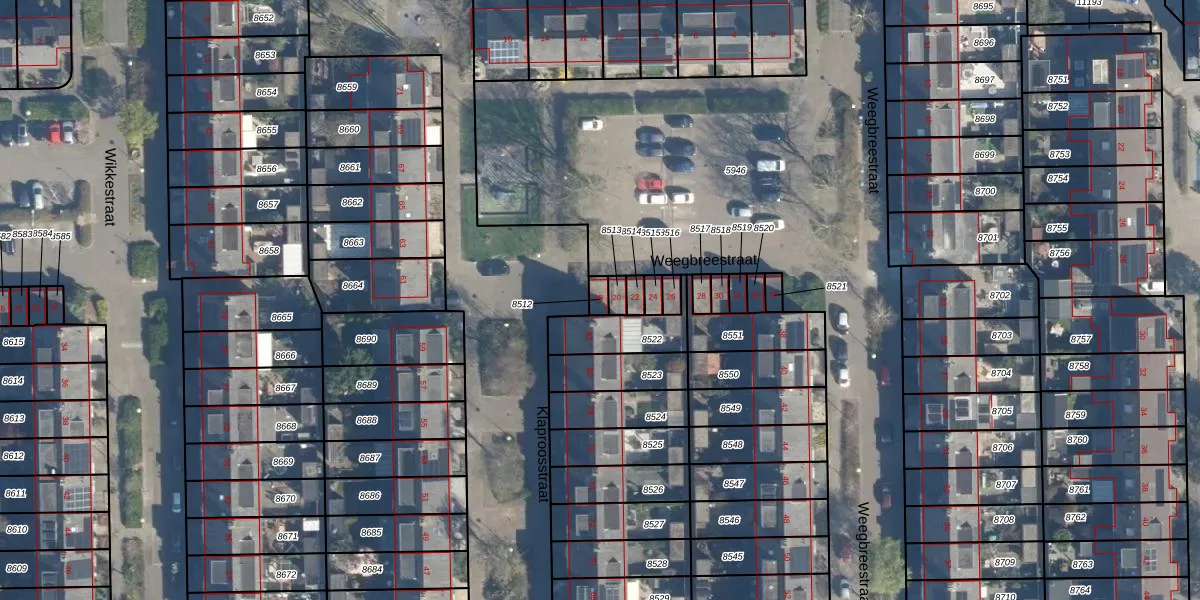 Gebruik de zoekbalk of klik op een perceel om informatie over het perceel te bekijken.