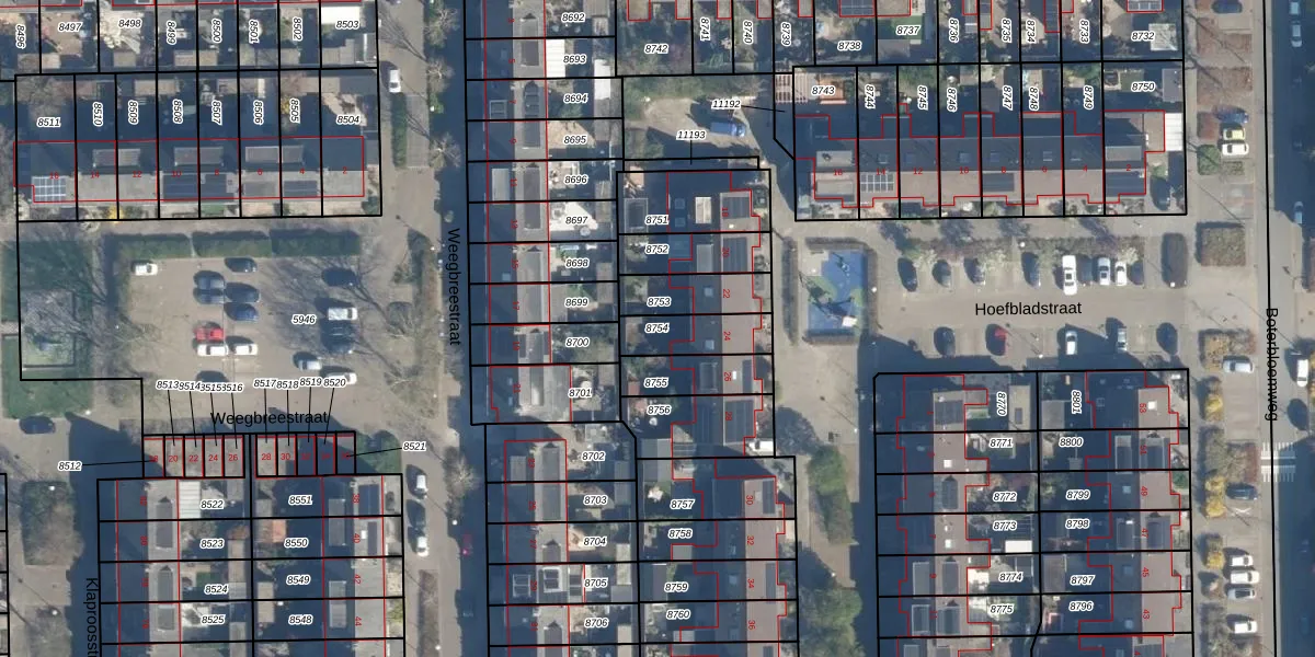 Gebruik de zoekbalk of klik op een perceel om informatie over het perceel te bekijken.