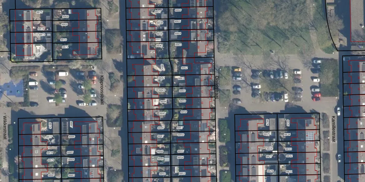 Gebruik de zoekbalk of klik op een perceel om informatie over het perceel te bekijken.