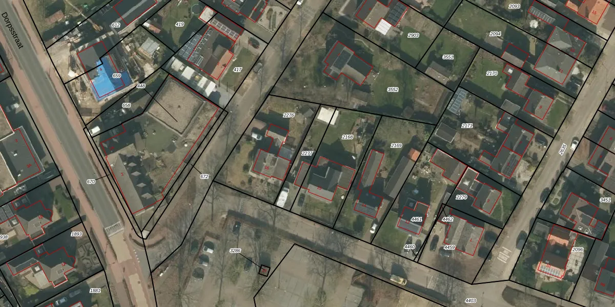 Gebruik de zoekbalk of klik op een perceel om informatie over het perceel te bekijken.