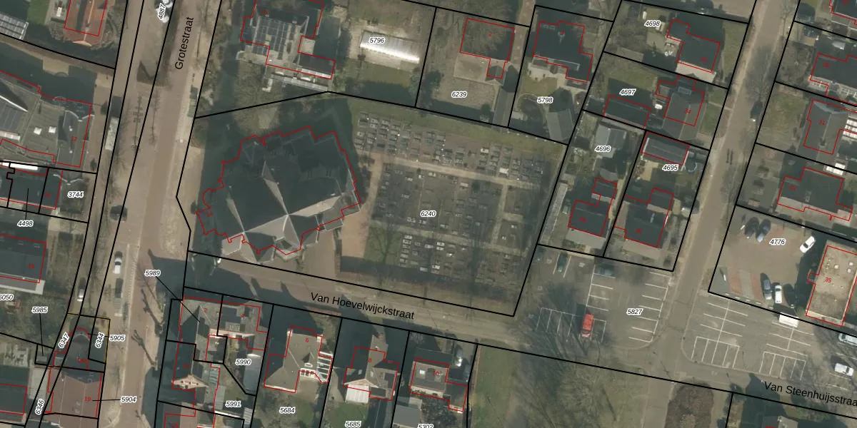 Gebruik de zoekbalk of klik op een perceel om informatie over het perceel te bekijken.