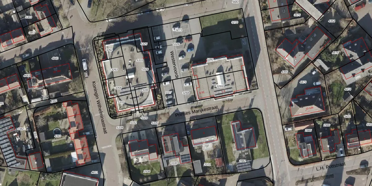 Gebruik de zoekbalk of klik op een perceel om informatie over het perceel te bekijken.