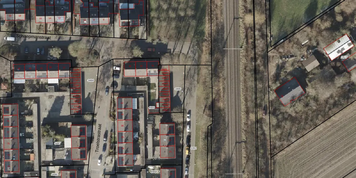 Gebruik de zoekbalk of klik op een perceel om informatie over het perceel te bekijken.