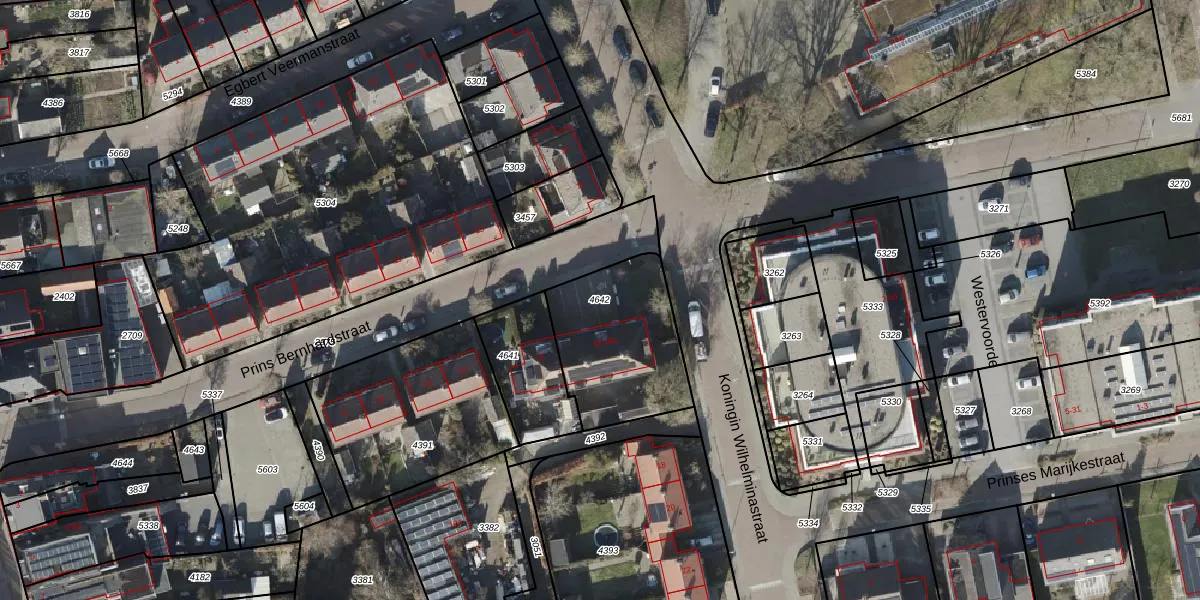 Gebruik de zoekbalk of klik op een perceel om informatie over het perceel te bekijken.