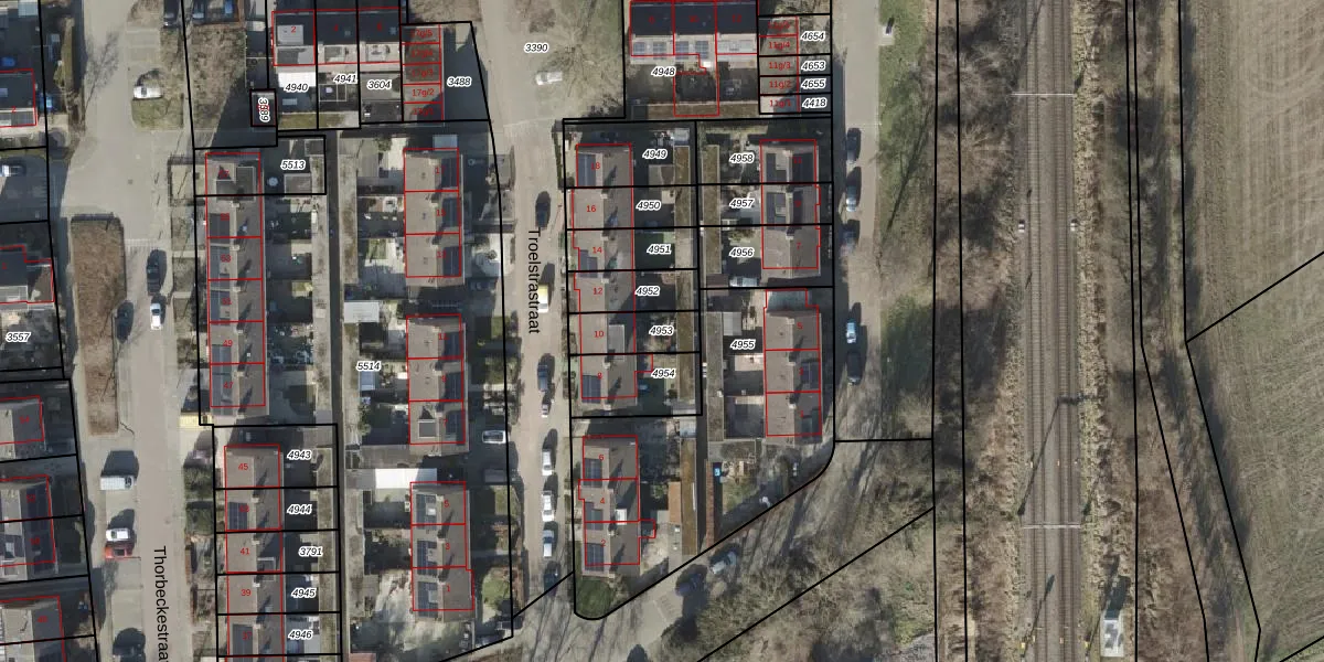 Gebruik de zoekbalk of klik op een perceel om informatie over het perceel te bekijken.