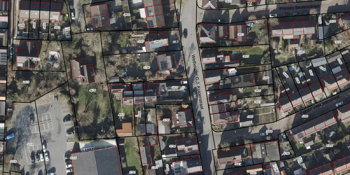 Gebruik de zoekbalk of klik op een perceel om informatie over het perceel te bekijken.