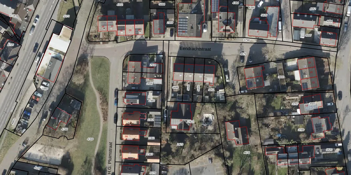 Gebruik de zoekbalk of klik op een perceel om informatie over het perceel te bekijken.
