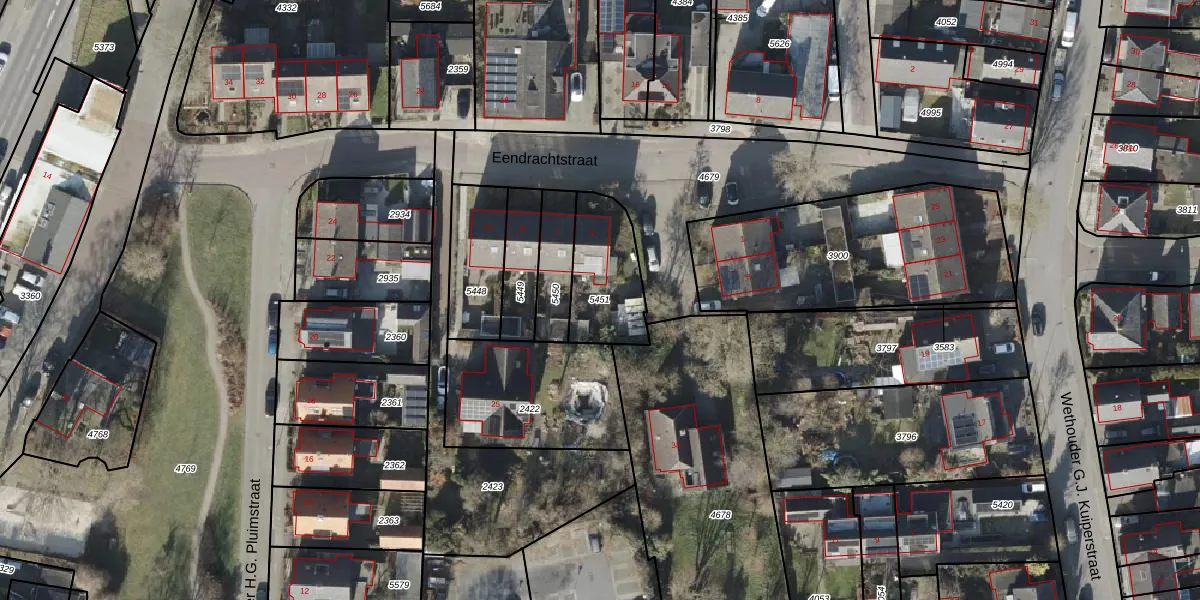 Gebruik de zoekbalk of klik op een perceel om informatie over het perceel te bekijken.