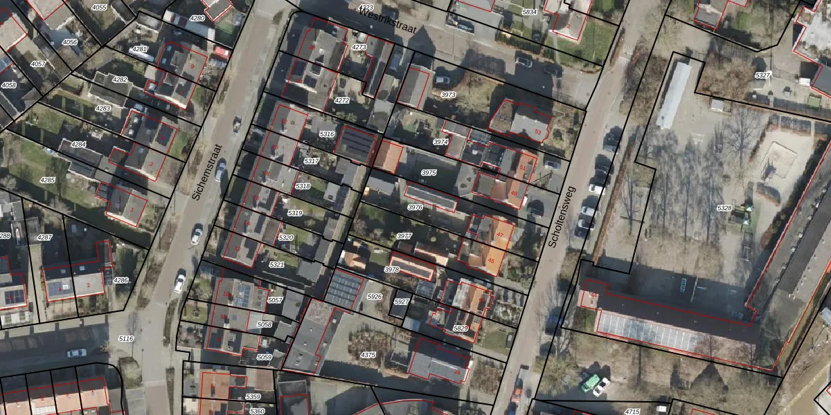 Gebruik de zoekbalk of klik op een perceel om informatie over het perceel te bekijken.