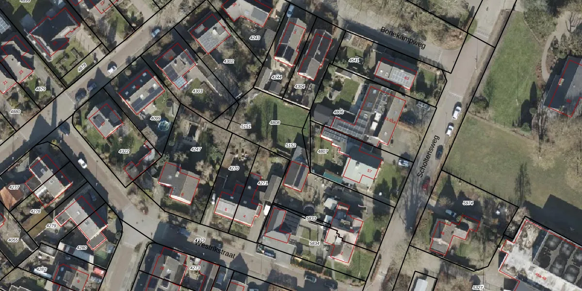 Gebruik de zoekbalk of klik op een perceel om informatie over het perceel te bekijken.