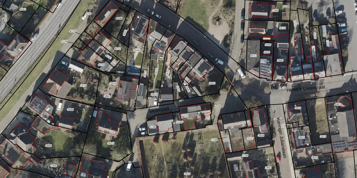 Gebruik de zoekbalk of klik op een perceel om informatie over het perceel te bekijken.
