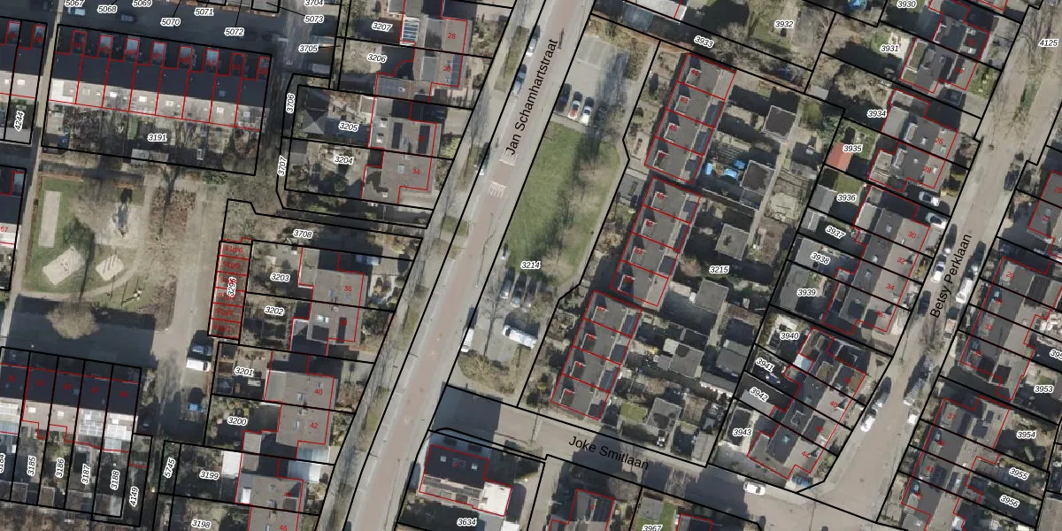 Gebruik de zoekbalk of klik op een perceel om informatie over het perceel te bekijken.