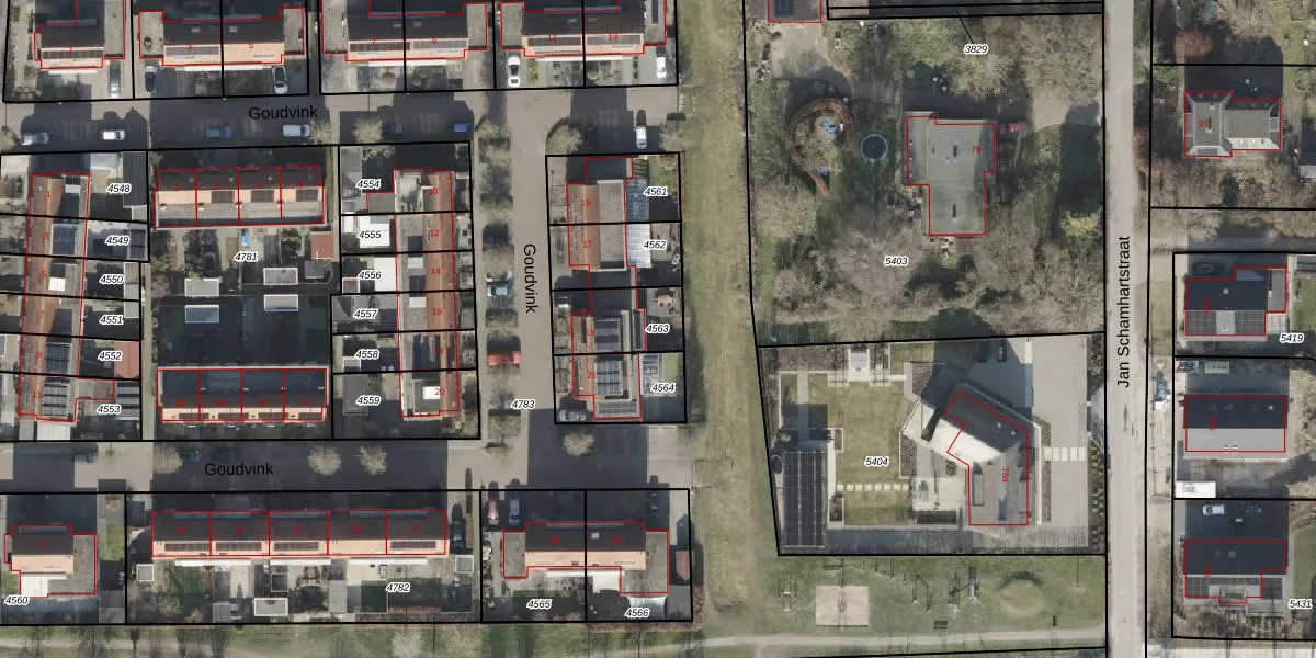 Gebruik de zoekbalk of klik op een perceel om informatie over het perceel te bekijken.