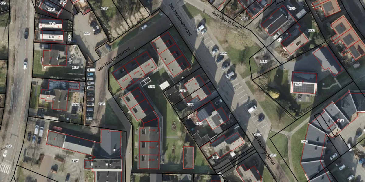 Gebruik de zoekbalk of klik op een perceel om informatie over het perceel te bekijken.