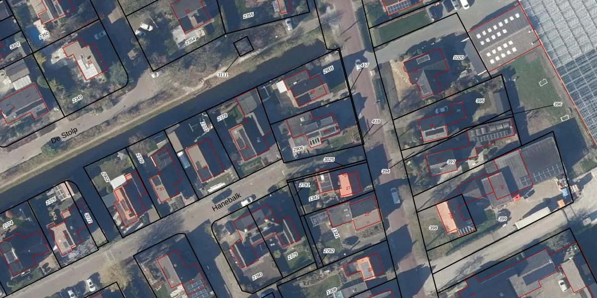 Gebruik de zoekbalk of klik op een perceel om informatie over het perceel te bekijken.