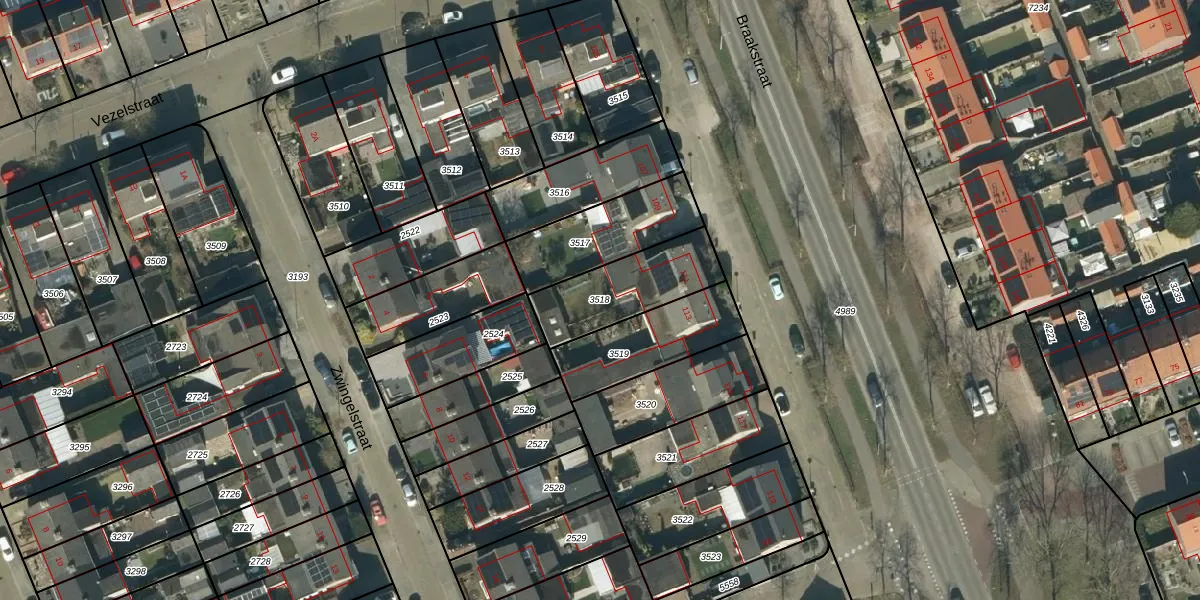Gebruik de zoekbalk of klik op een perceel om informatie over het perceel te bekijken.