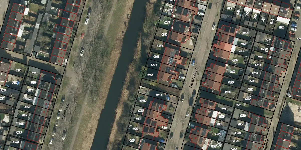 Gebruik de zoekbalk of klik op een perceel om informatie over het perceel te bekijken.