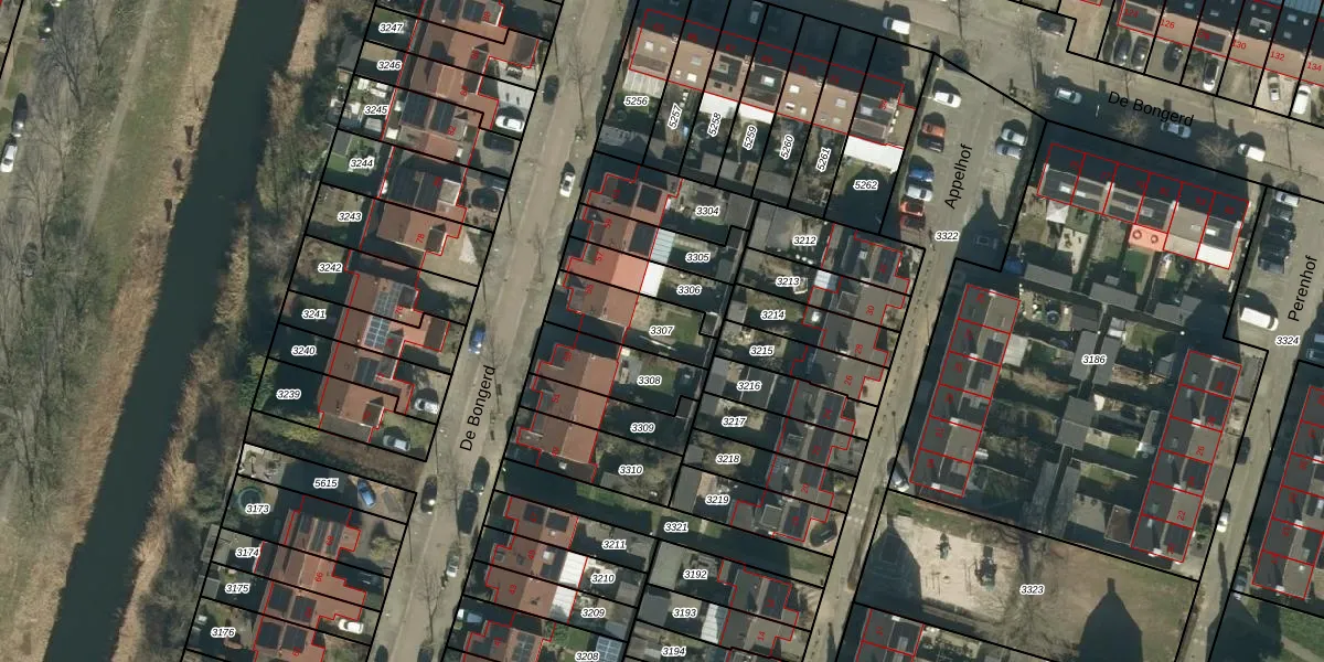 Gebruik de zoekbalk of klik op een perceel om informatie over het perceel te bekijken.