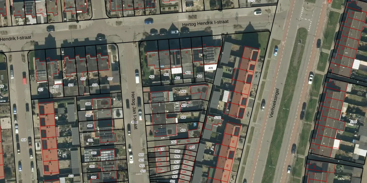 Gebruik de zoekbalk of klik op een perceel om informatie over het perceel te bekijken.