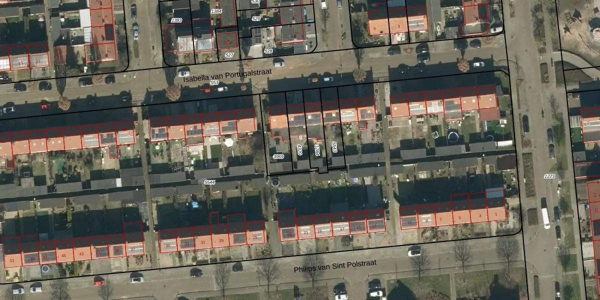 Gebruik de zoekbalk of klik op een perceel om informatie over het perceel te bekijken.