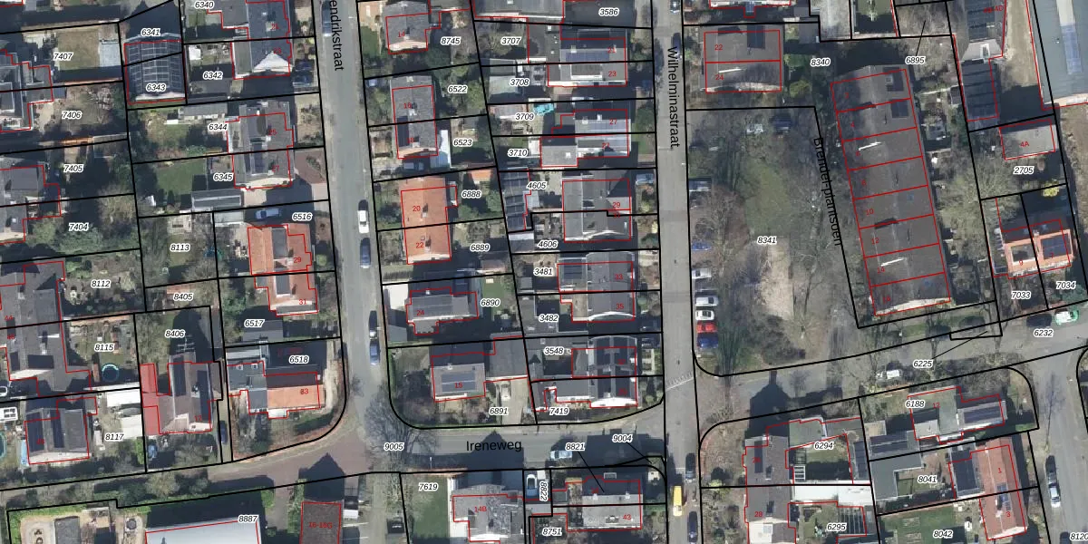 Gebruik de zoekbalk of klik op een perceel om informatie over het perceel te bekijken.
