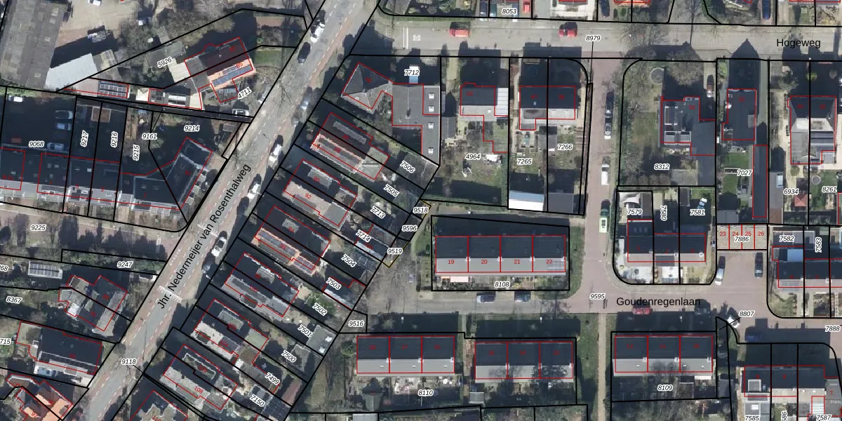 Gebruik de zoekbalk of klik op een perceel om informatie over het perceel te bekijken.