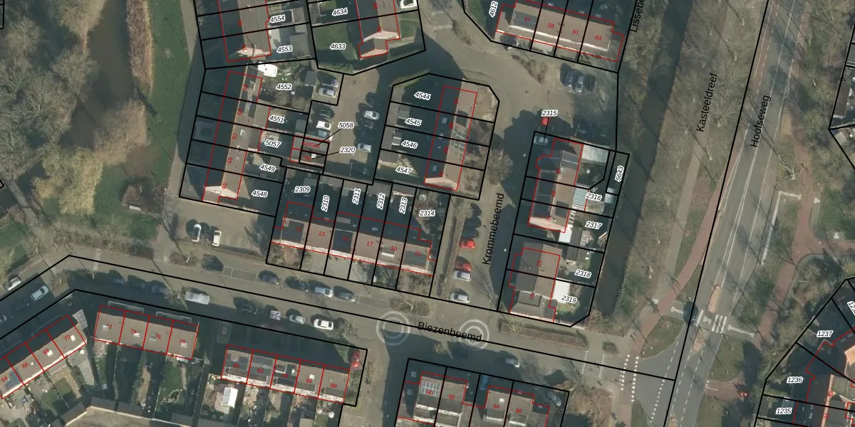Gebruik de zoekbalk of klik op een perceel om informatie over het perceel te bekijken.