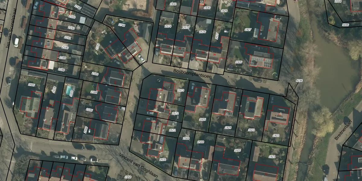 Gebruik de zoekbalk of klik op een perceel om informatie over het perceel te bekijken.