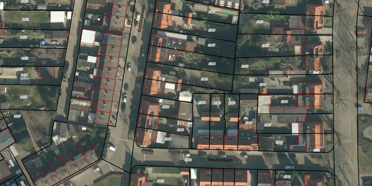 Gebruik de zoekbalk of klik op een perceel om informatie over het perceel te bekijken.
