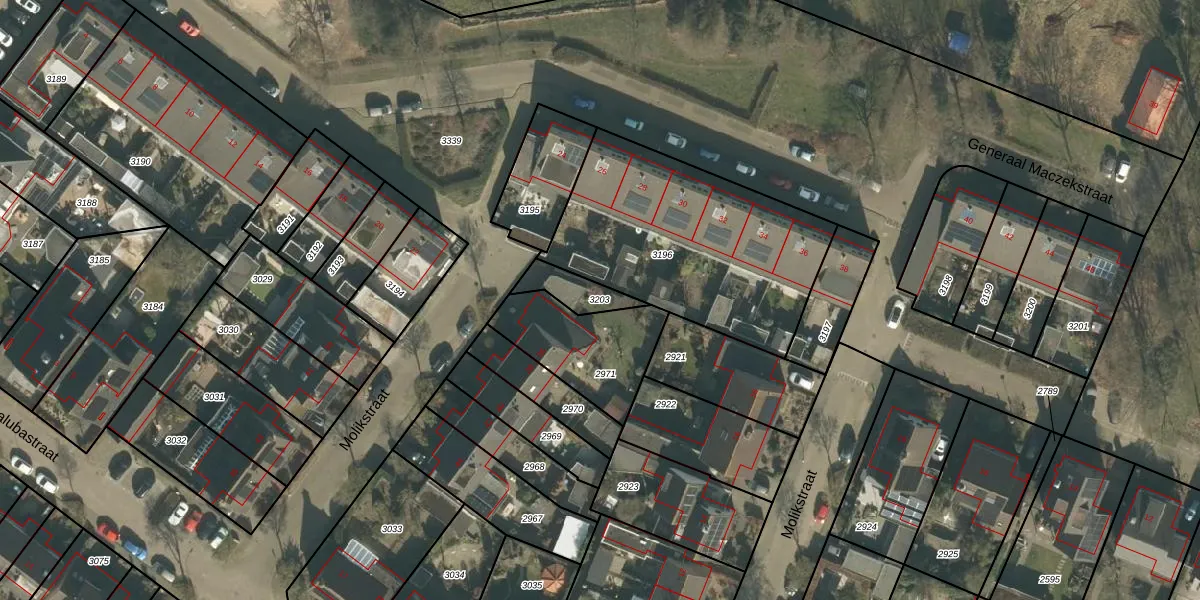 Gebruik de zoekbalk of klik op een perceel om informatie over het perceel te bekijken.