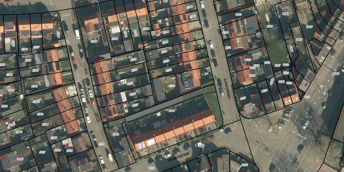 Gebruik de zoekbalk of klik op een perceel om informatie over het perceel te bekijken.